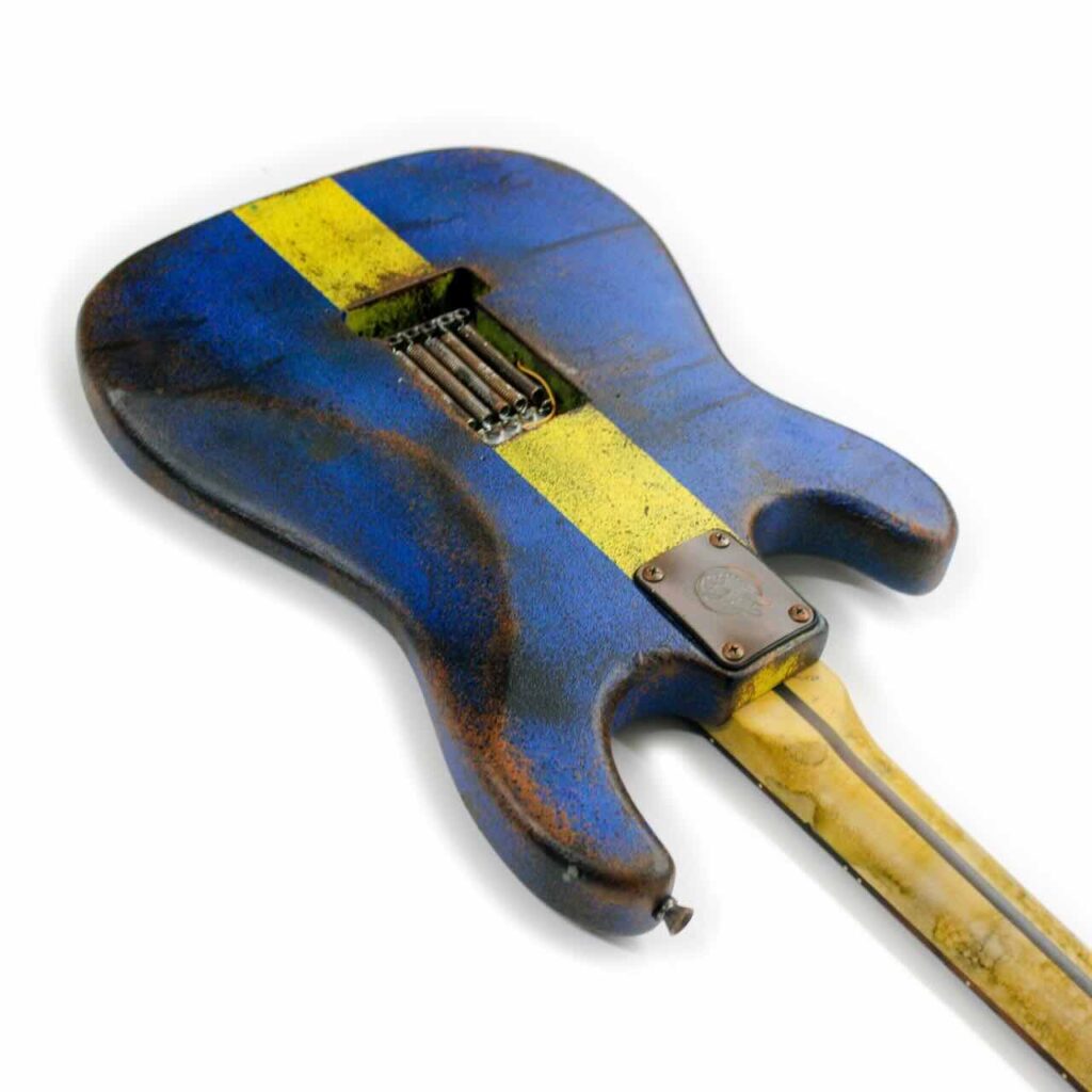 ST-Style guitar shape in Fallout paint style with a matching pickguard. Loaded with three Single Coils.